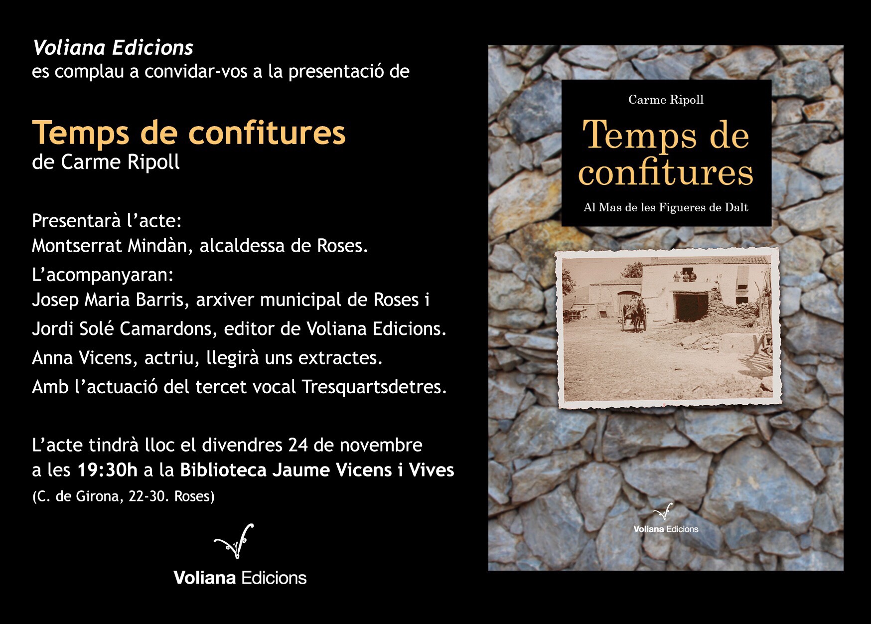 L'acompanyaran Josep M. Barris, arxiver municipal. Lectura de textos a càrrec de l'Anna Vicens.