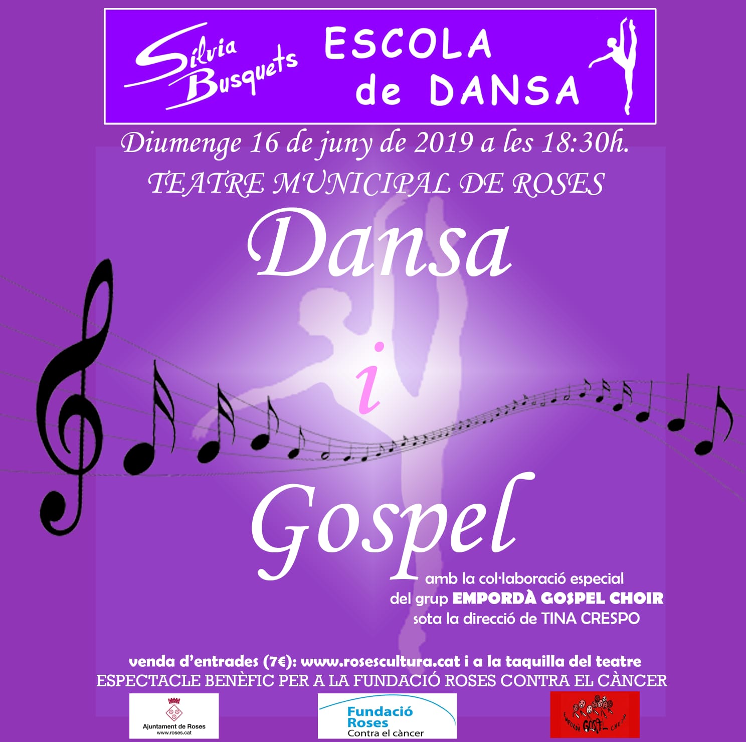 Espectacle de Dansa i Gospel organitzat per l'Escola de Dansa Sílvia Busquets i amb la col·laboració d' Empordà Gospel Choir, Gospel Bescanó i Gallaret Gospel Choir de Santa Coloma de Farners sota la direcció de Tina Crespo.
